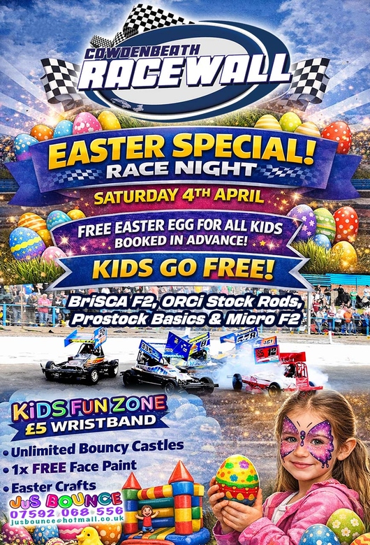 The Racewall brings all the action from Saloon Stock Cars, BriSCA F2, Prostocks & Prostock Basics